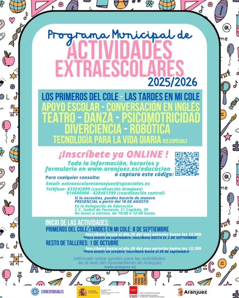 Para más información sobre el programa y el proceso de inscripción, queda a disposición el teléfono 914 680 906 o el correo electrónico extraescolaresaranjuez@spsociales.es