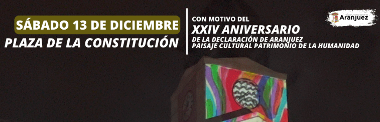 • 18:00 h. Primer pase Vídeo Mapping. Proyecciones de fotografías del Paisaje Cultural de Aranjuez y dibujos de alumnos de los colegios de la ciudad en la fachada del Ayuntamiento.