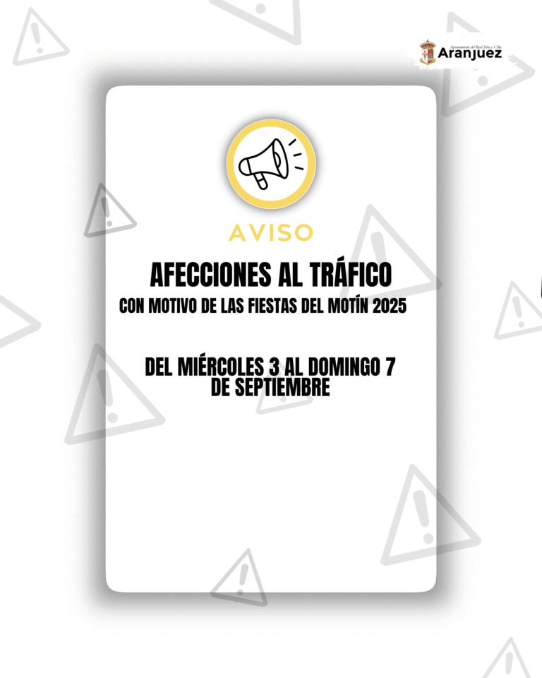 Con motivo de la celebración de las Fiestas del Motín se producirán una serie de afecciones al tráfico, indicadas a continuación: