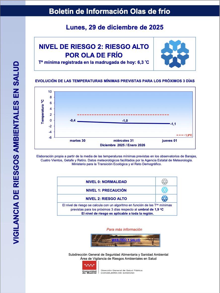 La información completa, así como las recomendaciones, está disponible en la web de la Comunidad de Madrid en Frío y salud https://www.comunidad.madrid/servicios/salud/frio-salud