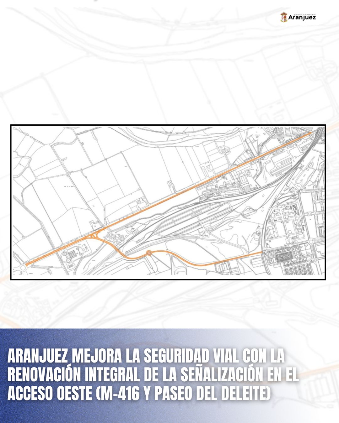 ARANJUEZ MEJORA LA SEGURIDAD VIAL CON LA RENOVACIÓN INTEGRAL DE LA SEÑALIZACIÓN EN EL ACCESO OESTE (M-416 Y PASEO DEL DELEITE)