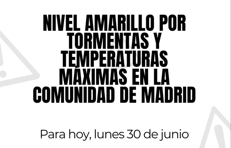 AVISO POR FENÓMENOS METEOROLÓGICOS ADVERSOS NIVEL AMARILLO POR TORMENTAS Y TEMPERATURAS MÁXIMAS EN LA COMUNIDAD DE MADRID