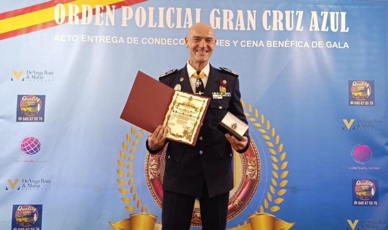 Aranjuez, 3 de diciembre de 2025. El inspector de la Policía Local de Aranjuez, Enrique Guzmán Alonso, ha sido distinguido con la Encomienda Reino de Valencia Cruz Azul Emergencias de Oro, con distintivo Azul, otorgada por la Orden Policial Gran Cruz Azul. El acto de entrega tuvo lugar el pasado sábado 29 de noviembre.
