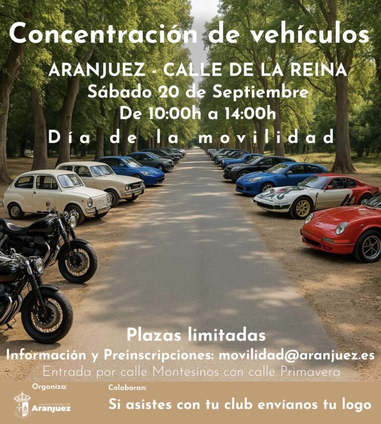 El Ayuntamiento de Aranjuez, en el marco de la Semana Europea de la Movilidad, organiza un año más, a través de la Delegación de Movilidad, la tradicional exposición de vehículos en nuestra ciudad.