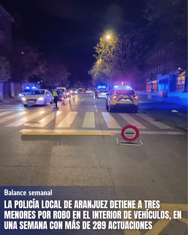 LA POLICÍA LOCAL DE ARANJUEZ DETIENE A TRES MENORES POR ROBO EN EL INTERIOR DE VEHÍCULOS, EN UNA SEMANA CON MÁS DE 289 ACTUACIONES