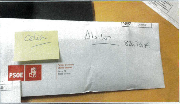 Les parece «particularmente significativo» que en un sobre se escribiese la cantidad de 826 euros cuando el PSOE justificó 321