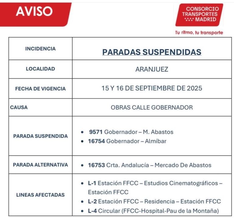 PARADAS DE AUTOBUS SUSPENDIDAS POR OBRAS EN LA CALLE GOBERNADOR